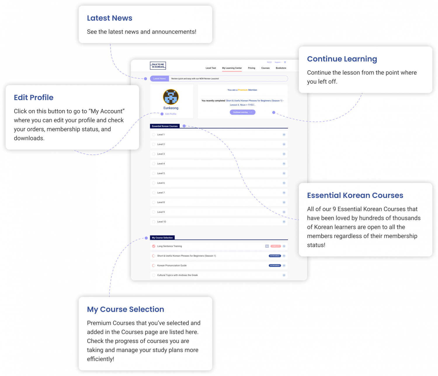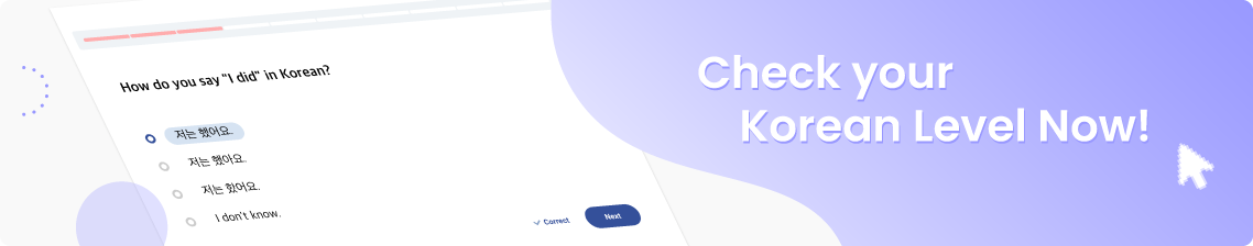If you are not sure where to start or which level you are at, we recommend you take this Korean level test first! You can take it by clicking on the Level Test button in the top menu bar of our website if you just joined us or haven’t taken the test yet. Feel free to retake the test in the footer menu whenever you want to check how much improvement you have made with your Korean.